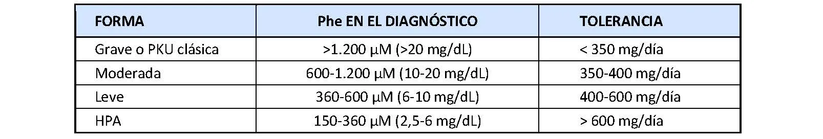 Consiste en la presencia de elevaciones en las concentraciones de fenilalanina (Phe) en sangre por defecto en el catabolismo de la fenilalanina, debido en la mayoría de los casos, a una deficiencia primaria de la fenilalanina-hidroxilasa hepática, y con menor frecuencia, puede aparecer como consecuencia de un defecto en la dihidropterina reductasa o en la síntesis/regeneración de su cofactor BH4 (tetrahidrobiopterina). Se trata de un trastorno congénito autosómico recesivo que se manifiesta de diversas formas clínicas en función del grado de actividad residual de la enzima. La clasificación se basa en las concentraciones de Phe en el momento del diagnóstico y en la tolerancia a la Phe (mg/día de Phe en la dieta).