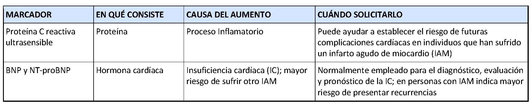 Tabla de biomarcadores cardiacos utilizados para establecer un pronóstico