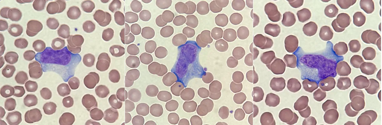 Suele realizarse junto con un hemograma y una extensión de sangre, para saber si existe un aumento en el recuento de leucocitos con una linfocitosis reactiva. La MNI se caracteriza por la presencia de linfocitos atípicos, también llamados reactivos, activados o estimulados (Figura 1).